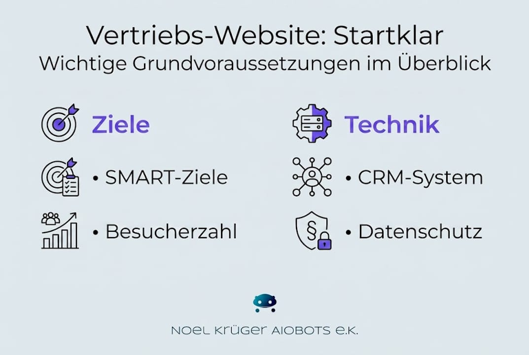 Um den Vertrieb gezielt zu stärken, sind einige Grundlagen zu prüfen und Ziele zu definieren. Wer ohne Ziel optimiert, optimiert ins Leere. Der erste Schritt ist deshalb immer die Frage: Was soll meine Website konkret leisten?